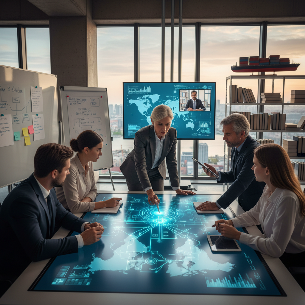Zespół logistyczny podczas konsultacji z ekspertem wdrożeniowym.