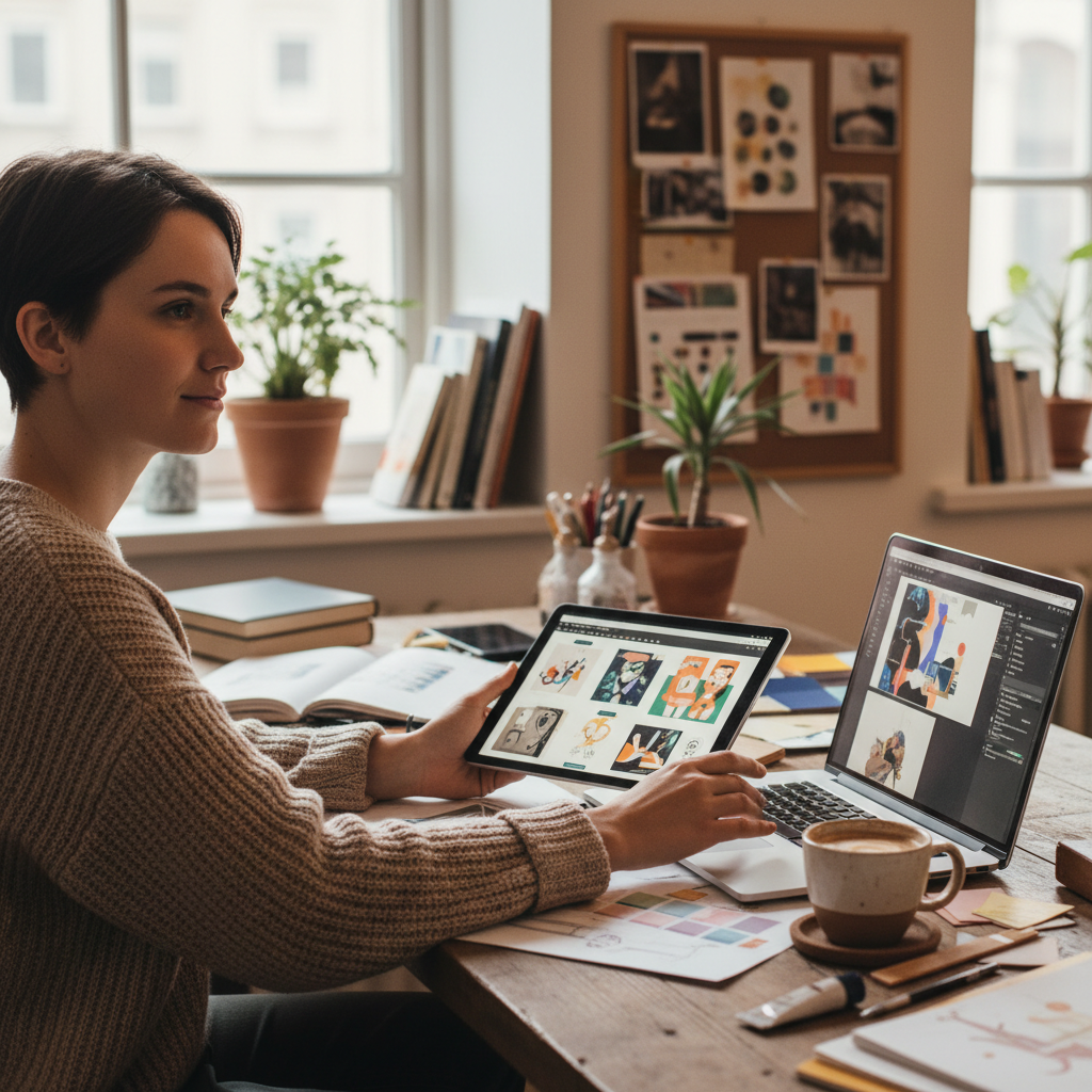 - Opublikuj portfolio online – najprościej: na Behance, Dribbble, własnej stronie lub nawet w PDF.